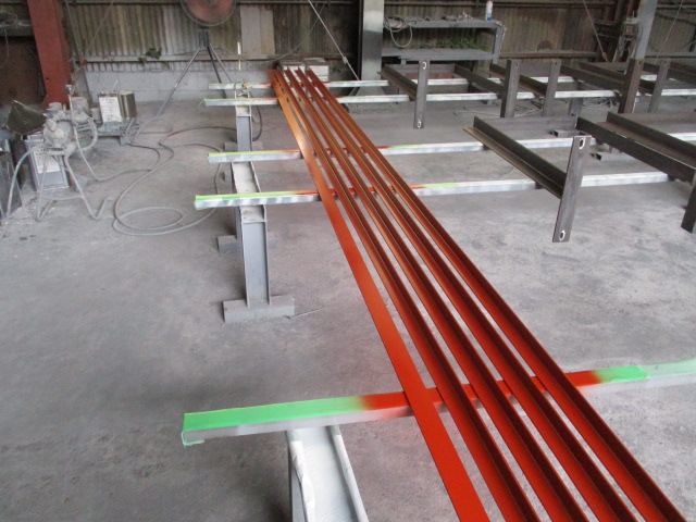 在庫の鋼材をすぐにシンナー拭きして、塗装して・・。